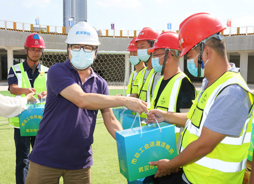 8月26日下午,武漢市總工會副主席李兵帶隊(duì),在集團(tuán)公司工會主席江強(qiáng)生的陪同下,來到集團(tuán)公司所屬鐵投公司月亮灣城市陽臺項(xiàng)目工地,慰問項(xiàng)目建設(shè)一線職工,為勞動(dòng)競賽加油鼓勁。市總工會經(jīng)濟(jì)部部長吳志武等參加活動(dòng)。