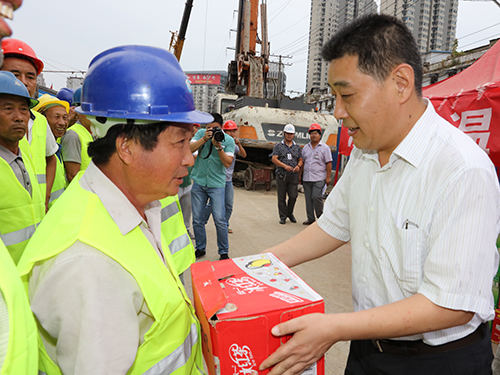 彭浩表示,今天受萬勇市長委托,看望城投公司生產(chǎn)建設(shè)一線的同志們,感謝你們在高溫酷暑里堅守在生產(chǎn)建設(shè)一線,為了市民安全用水用氣、為了城市建設(shè)所作的積極奉獻!他勉勵大家繼續(xù)發(fā)揚這種不怕高溫酷暑、克難奮戰(zhàn)的精神,再接再厲,為城市的發(fā)展再作貢獻。