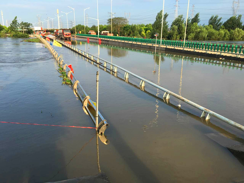 在水位持續(xù)上漲并已漫過橋面的情況下,一邊抓緊與交管部門溝通協(xié)商封路事宜,一邊組織現(xiàn)場人員進行交通疏導。同時,兄弟單位水務集團、燃氣集團也及時對小河橋現(xiàn)場水氣管網(wǎng)情況進行了安全排查。22時,交管部門對三環(huán)北(三金潭――諶家磯)實行交通封閉,現(xiàn)場立即調用2臺裝載機、3臺挖掘機、2臺吊車、2臺叉車開始進行封堤圍堰施工。由于準備充分,經過緊張組織施工,23時50分完成封堵和圍堰加固工作。