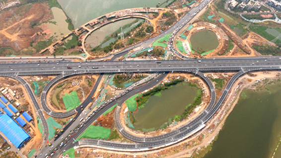 野芷湖立交橋作為連接三環(huán)線與南大門的重要交通樞紐,原有的4股上下橋匝道已無法滿足日益增加的車流量,成為當?shù)亟煌ǖ摹澳c梗阻”。集團公司投資建設的新野芷湖立交橋是其中重要的節(jié)點工程,將建成全市第一座分離式集散車道的樞紐立交,其中南北兩側共計4條匝道在改造后將變成南北各4條匝道,同時在三環(huán)線上增加幫寬橋,使單側橋面寬度增加2車道,專門用于分流下行匝道車輛,較好地起到行車疏導作用。