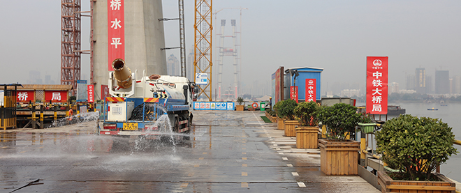 工程代建單位道橋公司有關(guān)負(fù)責(zé)人介紹:“我們這個(gè)工地的特點(diǎn)就是綠色環(huán)保,對(duì)揚(yáng)塵嚴(yán)格控制,通過(guò)營(yíng)造景觀、種植樹(shù)木提高工地的‘顏值’,讓工地變成花園。”在武昌岸的施工現(xiàn)場(chǎng),花草樹(shù)木都被搬上了臨時(shí)搭建的鋼棧橋。為了提高花草樹(shù)木成活率,特別選用了成活率高的黃楊球、鐵樹(shù)等,并按照季節(jié)更換花草,還安裝了自動(dòng)灌溉系統(tǒng)。