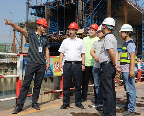 9月15日上午,集團(tuán)公司董事長(zhǎng)金國發(fā)前往岱山大橋和解放大道下延線朱家河大橋工程現(xiàn)場(chǎng),檢查工程建設(shè)情況。