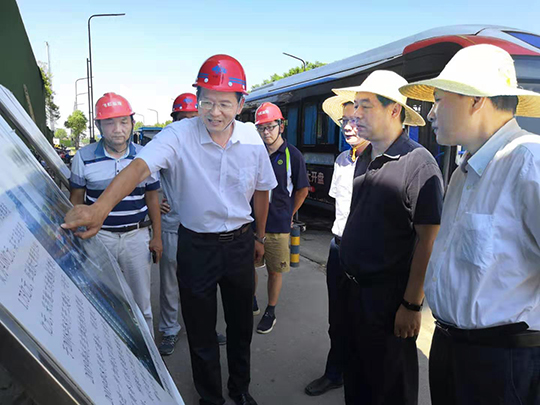 7月29日上午,集團(tuán)公司董事長(zhǎng)金國(guó)發(fā),副總經(jīng)理盛華一行,檢查調(diào)度紅鋼城大街(和平大道―臨江大道)、二七長(zhǎng)江大橋臨江匝道等項(xiàng)目建設(shè)。