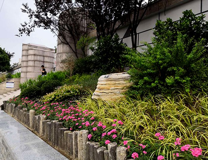 在永清門閘口處,植物特色為“竹隱青松”,以竹子、羅漢松等常綠木本多年生植物為主,營(yíng)造出綠意盎然的蔥戎景象,整體呼應(yīng)“永青”二字。