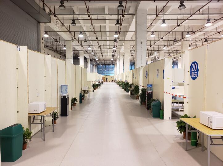 15日完成上下兩層病患區(qū)共1047個(gè)床位隔斷、給排水、供電、通信、監(jiān)控、化糞池等主體功能,16日物資采購基本到位,“方艙”生活用品、衛(wèi)生間、洗漱、淋浴、空調(diào)取暖、熱水器、醫(yī)廢收集等功能配套安裝布設(shè)到位。緊接著,邀請中央、省、市三級疾控專家現(xiàn)場指導(dǎo),“三區(qū)兩通道”、新風(fēng)系統(tǒng)等逐步完善。建設(shè)者們克服一切困難,一周時(shí)間內(nèi)建成這座方艙醫(yī)院。市指揮部原下達(dá)1000張床位任務(wù),為盡力發(fā)揮功效,最終擴(kuò)為1047個(gè)。