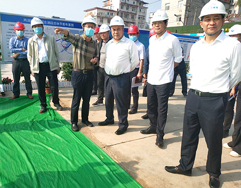 集團(tuán)公司副總經(jīng)理盛華,以及項(xiàng)目管理部、橋建集團(tuán)、譽(yù)城集團(tuán)等部門和單位主要負(fù)責(zé)人陪同檢查。