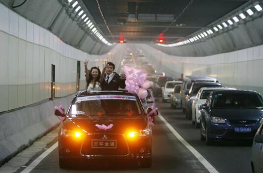 2008年12月28日,武漢長(zhǎng)江隧道通車(chē),一對(duì)新人途經(jīng)隧道駛向幸福生活。