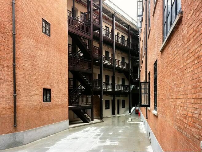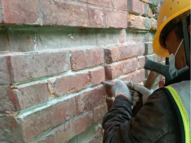 巴公房子極具特色的俄式紅磚清水墻因年久失修早已破舊不堪,為遵循最小干預(yù)原則,還原清水墻本色,天時(shí)公司修繕人員首先將被后人隨意粉刷過(guò)的墻面手工剝離,清縫再進(jìn)行拼色做舊。為盡可能的復(fù)原房屋外立面紅磚的原貌,天時(shí)公司在項(xiàng)目施工前期采取現(xiàn)場(chǎng)取樣送檢的方式,在具有代表性的點(diǎn)位選取破損的紅磚,由同濟(jì)大學(xué)材料力學(xué)實(shí)驗(yàn)室對(duì)其配料、強(qiáng)度、色澤、成分等進(jìn)行檢測(cè),并根據(jù)檢測(cè)結(jié)果進(jìn)行磚粉配比。配比完成后,再及時(shí)進(jìn)行打樣,經(jīng)多方認(rèn)可后開(kāi)始對(duì)清水墻展開(kāi)施工,80余位工匠花費(fèi)近1年時(shí)間,手工為8000?的房屋立面更換了共計(jì)56萬(wàn)塊紅磚。