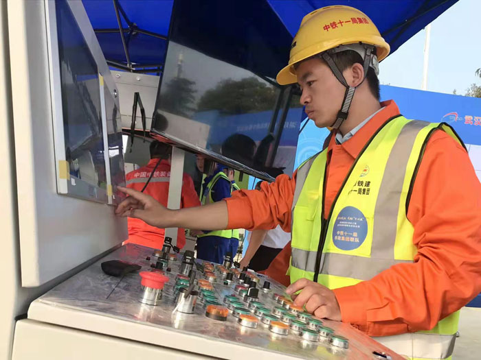 此次技能比武的盾構(gòu)機(jī)操作模擬及基坑應(yīng)急搶險(xiǎn)2個(gè)項(xiàng)目,依照工程實(shí)際設(shè)計(jì),模擬操作臺(tái)和實(shí)際操作臺(tái)完全一樣。在項(xiàng)目現(xiàn)場,盾構(gòu)模擬操作臺(tái)上有40多個(gè)顏色不同的按鈕,按功能分區(qū),分別對(duì)應(yīng)設(shè)備啟停、推進(jìn)、刀盤控制等系統(tǒng)??脊俳o出模擬情景,比如掘進(jìn)中遇到軟土層、巖石層、淤泥或粉砂層,參賽人員再根據(jù)情景判斷應(yīng)該使用的參數(shù),然后對(duì)操作系統(tǒng)進(jìn)行相應(yīng)的調(diào)整。