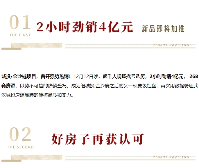 城投·金沙樾,開盤即熱銷!武漢城投“好房子”再次引爆市場!