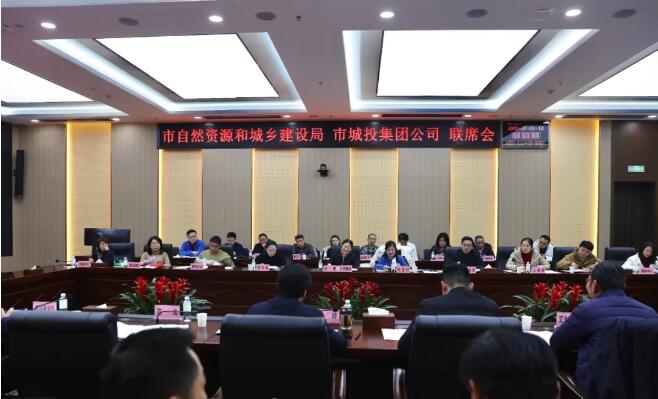 2月11日,市自然資源和城鄉(xiāng)建設(shè)局與市城投集團公司召開政企聯(lián)席會,聚焦城市功能品質(zhì)提升,共繪發(fā)展藍(lán)圖、共商實施路徑、共破推進難題。市自然資源和城鄉(xiāng)建設(shè)局黨組成員、副局長?,?,市城投集團公司黨委委員、副總經(jīng)理黃峰,副總經(jīng)理明將來,副總工程師陳勇出席會議。